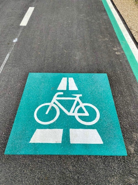 Fahrrad-Piktogramm auf dem ersten Teilstück des Radschnellwegs München-Garching © Laura Ganswindt